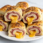 Delicious and easy-to-make Ham and Cheese Sticks feature crescent dough wrapped around savory deli ham and melted cheddar cheese. Brushed with a flavorful butter glaze infused with Worcestershire sauce, Dijon mustard, onion, and poppy seeds, these golden baked snacks are perfect for appetizers, parties, or a tasty snack any time.