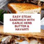 Keywords: steak sandwich, steak sandwich recipe, caramelized onion sandwich, herb butter sandwich, Havarti cheese sandwich, quick steak meal