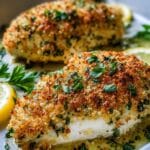 This Herb-Crusted Baked Boursin Chicken recipe transforms simple chicken breasts into a flavorful and elegant dinner. The chicken is stuffed with creamy Boursin cheese, coated with a crunchy herb and Parmesan breadcrumb crust, then baked to juicy perfection. It’s perfect for a special weeknight meal or entertaining guests.