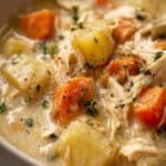 Keywords: chicken pot pie soup, high protein soup, comfort food, creamy chicken soup, healthy chicken soup, easy dinner