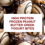 These High Protein Frozen Peanut Butter Greek Yogurt Bites are a delicious and nutritious snack combining creamy Greek yogurt with the rich flavors of peanut butter and dark chocolate. Perfect for a high-protein treat that satisfies your sweet tooth while keeping calories in check. They are easy to prepare, require minimal ingredients, and are perfect for freezing and enjoying anytime.