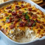 - Bake the dip: Preheat your oven to 350°F (175°C). Grease a 9×9 or 8×8 inch baking dish, then spread the prepared mixture evenly into the dish. Bake uncovered for 25 to 30 minutes, or until the dip is hot and bubbly throughout and the cheese has melted completely.