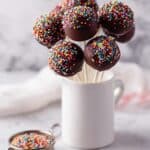 Store cake pops in an airtight container at room temperature for up to 2 days or in the refrigerator for up to a week. Make sure they are completely set before storing. For longer storage, freeze cake pops for up to one month and thaw in the refrigerator before serving. If refrigerated, allow them to come to room temperature for best flavor and texture. Reheating is not recommended as it may melt the chocolate coating.
