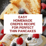 This Homemade Crepes recipe yields delicate, thin French-style pancakes perfect for sweet or savory fillings. Made from a simple batter of flour, eggs, milk, and butter, these crepes cook quickly on the stovetop to a light golden brown, making them an easy yet elegant treat for breakfast, brunch, or dessert.