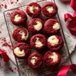 These Homemade Red Velvet Brownie Bites combine the rich, fudgy texture of classic brownies with the indulgent cream cheese swirl of cheesecake, delivering bite-sized delights perfect for any occasion. Featuring deep red velvet hues enhanced by espresso powder and vinegar, these mini treats are baked in a muffin pan to create the perfect sweet and creamy contrast in every bite.