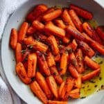 This honey roasted carrots recipe offers a perfect balance of sweetness and subtle heat, enhanced with fresh herbs and a buttery honey glaze. Tender roasted carrots are coated in a flavorful mixture of honey, cayenne pepper, and fresh thyme, making a deliciously simple side dish perfect for any meal.