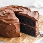 Hot coffee enhances the chocolate flavor and helps dissolve the cocoa powder, resulting in a richer cake. You can use brewed decaf coffee or strong black tea as alternatives.