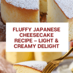 This Japanese Cheesecake is a light and fluffy dessert combining the richness of cream cheese with the delicate texture of a soufflé-style cake. It features a creamy base blended with whipped meringue and is baked in a water bath to maintain moisture and achieve a perfectly airy consistency. Served plain, dusted with powdered sugar, or glazed with apricot jam alongside berries and whipped cream, this cheesecake offers a delightful balance of sweetness and tang.