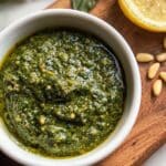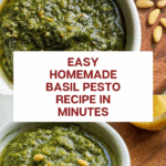 This homemade basil pesto recipe is a simple, fresh, and versatile sauce made from toasted pine nuts, fresh basil leaves, garlic, Parmesan cheese, and high-quality olive oil. Perfect as a pasta sauce, spread, or dip, it brings vibrant flavor with the optional touch of lemon juice for added brightness.