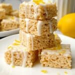 Keywords: Lemon Rice Krispy Treats, Lemon Marshmallow Treats, Citrus Rice Krispies, No Bake Dessert, Easy Kids Treats, White Chocolate Drizzle Dessert