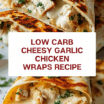 These Low Carb Cheesy Garlic Chicken Wraps are a flavorful and satisfying meal perfect for busy days. Tender garlic-infused chicken pairs perfectly with melted mozzarella cheese, all wrapped in a low-carb tortilla for a wholesome bite.
