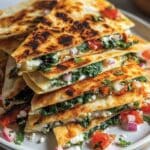 Mediterranean quesadillas are a fresh and flavorful twist on a classic favorite. Packed with spinach, feta, mozzarella, and vibrant veggies, these quesadillas offer a perfect balance of creamy, tangy, and savory in every bite.