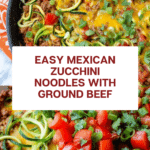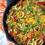 Keywords: Mexican zucchini, zucchini noodles, low carb dinner, taco beef skillet, healthy Mexican recipe, low carb, keto friendly