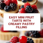 Mini fruit tarts are delightful bite-sized pastries filled with smooth pastry cream and topped with fresh, vibrant fruit. Perfect for parties or a sweet treat, these tarts combine a crisp, buttery crust with luscious filling and a glossy glaze.