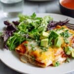 4. Bake Enchiladas: Cover the baking dish with foil sprayed with nonstick spray to prevent sticking. Bake in the preheated oven for 25 to 30 minutes, or until the cheese is melted and bubbly.