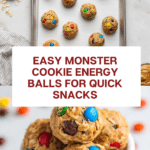 Keywords: monster cookie energy balls, no-bake energy bites, peanut butter energy balls, protein snack, healthy snack, quick energy bites, gluten free snacks