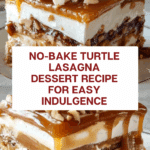 This No-Bake Turtle Lasagna Dessert is a deliciously rich and easy-to-make treat that combines creamy chocolate pudding, sweet caramel, crunchy pecans, and layers of graham crackers. Perfect for gatherings or a special family dessert, it requires no oven time and comes together in just a few simple steps.