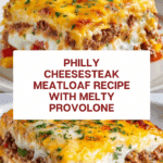 Keywords: Philly cheesesteak meatloaf, meatloaf recipe, provolone cheese meatloaf, baked meatloaf, comfort food