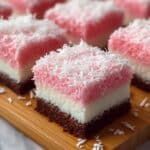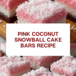 Delight in these Pink Coconut Snowball Cake Bars, featuring a rich cocoa-infused cake base topped with a fluffy, creamy frosting and a vibrant pink coconut topping. Perfectly balanced in flavor and texture, these bars offer a festive and visually stunning dessert ideal for gatherings or a sweet treat anytime.