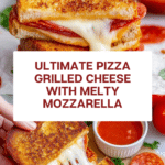 Pizza grilled cheese combines two beloved comfort foods into one indulgent treat. This melty, crispy sandwich features layers of mozzarella and pepperoni, perfectly paired with a garlic Parmesan butter and a side of warm pizza sauce for dipping.