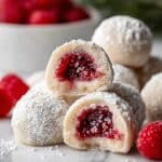 Raspberry Almond Snowball Cookies are delicate, buttery treats with a sweet raspberry center and a nutty almond flavor. Coated in powdered sugar, these cookies are perfect for festive occasions or a cozy afternoon snack.