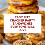 Ritz Cracker Party Sandwiches are bite-sized, savory treats perfect for any gathering. With layers of ham, cheese, and a flavorful butter glaze, these easy-to-make snacks are sure to be a crowd-pleaser.