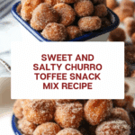 Keywords: churro snack, salty toffee mix, oyster crackers recipe, cinnamon sugar snack, party snack mix, sweet and salty snack