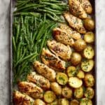 This Sheet Pan Honey Mustard Chicken with Beans and Potatoes is a perfectly balanced, one-pan meal featuring tender chicken breasts marinated in a sweet and tangy honey mustard sauce, roasted alongside crispy baby potatoes and fresh green beans. Easy to prepare and full of flavor, this dish is a great option for a wholesome weeknight dinner.