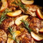 - Serve and garnish: Remove from heat and spoon the apple mixture over the chicken. Garnish with fresh thyme and rosemary if desired for an aromatic finish.