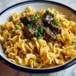 Store leftovers in an airtight container in the refrigerator for up to 3 days. Reheat gently on the stove or in the microwave, adding a splash of beef broth or water if the noodles absorb too much liquid. This dish can also be frozen for up to 2 months; thaw overnight in the refrigerator before reheating.