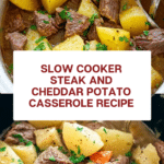 This Slow Cooker Steak and Cheddar Potato Casserole is a comforting, hearty meal perfect for busy days. Tender cubes of steak, creamy potatoes, and sharp cheddar cheese combine effortlessly in the slow cooker to create a rich and satisfying dish.