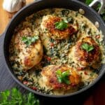 Keywords: creamy chicken skillet, sautéed chicken recipe, healthy chicken dinner, creamy mushroom chicken, one-pan chicken meal