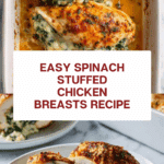 Delicious and creamy Spinach Stuffed Chicken Breasts baked to perfection. This recipe features tender chicken breasts filled with a savory mixture of cream cheese, Parmesan, mayonnaise, fresh spinach, and spices, resulting in a flavorful and comforting meal that’s easy to prepare and perfect for any weeknight dinner.