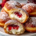These Strawberry Cheesecake Donuts combine soft, fluffy fried dough with a luscious strawberry cheesecake filling and a sweet strawberry glaze. Perfect for dessert or a special treat, these donuts offer a delightful blend of creamy and fruity flavors with a classic fried donut texture.