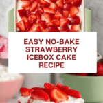 Keywords: Strawberry Icebox Cake, no bake dessert, Cool Whip dessert, graham cracker cake, easy summer dessert, layered dessert