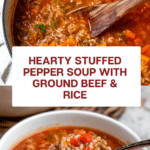 Keywords: stuffed pepper soup, ground beef soup, bell pepper soup, comfort food soup, easy stovetop soup