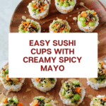 Keywords: sushi cups, sushi recipe, appetizer, Asian fusion, spicy mayo, avocado sushi, healthy snack