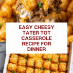 Keywords: tater tot casserole, ground beef casserole, cheesy casserole, comfort food, easy dinner recipe