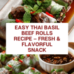 Thai Basil Beef Rolls are a fresh and flavorful appetizer that combines savory ground beef with aromatic herbs wrapped in delicate rice paper. These rolls offer a perfect balance of spicy, tangy, and sweet flavors, making them an irresistible treat for any occasion.