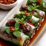 Thai Basil Beef Rolls are a fresh and flavorful appetizer that combines savory ground beef with aromatic herbs wrapped in delicate rice paper. These rolls offer a perfect balance of spicy, tangy, and sweet flavors, making them an irresistible treat for any occasion.