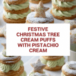 This festive Tree Cream Puffs recipe features light and airy choux pastry filled with luscious pistachio whipped cream, stacked to resemble a charming Christmas tree topped with delicate shortbread star cookies. Perfect for holiday celebrations, these elegant cream puffs combine a crisp pastry exterior with a rich, nutty filling and buttery shortbread accents for a delightful treat that’s as beautiful as it is delicious.