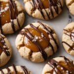 Twix Thumbprint Cookies are a delightful treat combining buttery soft cookie dough with a gooey caramel center and a drizzle of milk chocolate. These homemade cookies capture the iconic flavors of a Twix bar in a bite-sized form perfect for sharing.